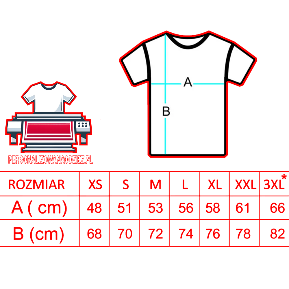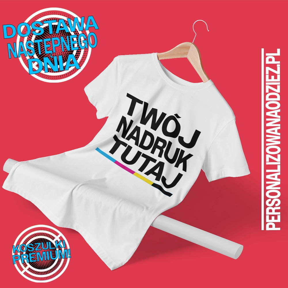 Nadruk na koszulce jest personalizowany, co oznacza, że można na niej umieścić dowolny wzór lub tekst według życzenia klienta. Nadruk jest wykonany z trwałych farb, które nie blakną podczas prania, dzięki czemu koszulka zachowuje swoją jakość i wygląd przez długi czas.